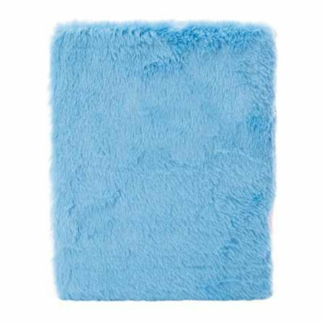 Cuaderno tapa dura forrado en tela de peluche hipoalergenica suave y delicado, rayado, con cierre en el frente y pequeñas formitas hechas en peluche que se pueden sacar para jugar.